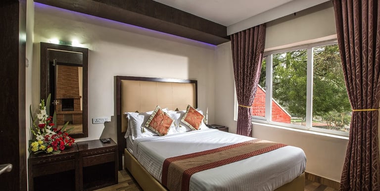 Hotel Lakeview sits pretty on an 8 acre stretch of land, on the sensuous terraced slopes of a hill offering a magnificent double spectacle. Even at an ambling pace, you can reach the boathouse in 10 minutes flat, or the bus stand in 15 minutes.The complex has easy access to every part of the town and beyond.